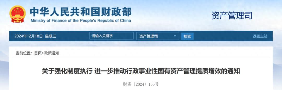 12月18日,財政部發(fā)布《關(guān)于強化制度執(zhí)行進一步推動行政事業(yè)性國有資產(chǎn)管理提質(zhì)增效的通知》。