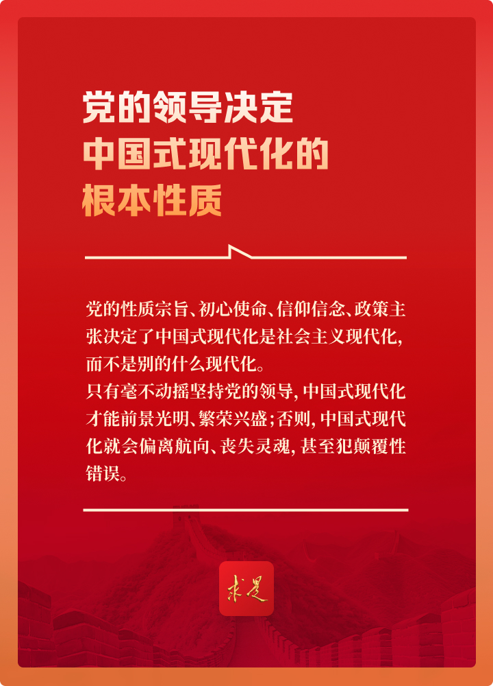 “為什么要強(qiáng)調(diào)黨在中國式現(xiàn)代化建設(shè)中的領(lǐng)導(dǎo)地位?這是因?yàn)椋h的領(lǐng)導(dǎo)直接關(guān)系中國式現(xiàn)代化的根本方向、前途命運(yùn)、最終成敗!