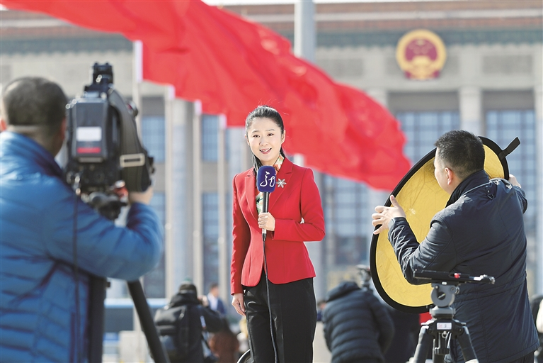 堅持團結穩(wěn)定鼓勁、正面宣傳為主,才能唱響主旋律,傳播正能量,不斷鞏固和壯大主流思想輿論,弘揚社會主義核心價值觀,為培育積極理性社會心態(tài)、促進社會和諧穩(wěn)定提供精神養(yǎng)料。圖為今年全國兩會期間,媒體記者在人民大會堂外進行報道。圖片來源:視覺中國
